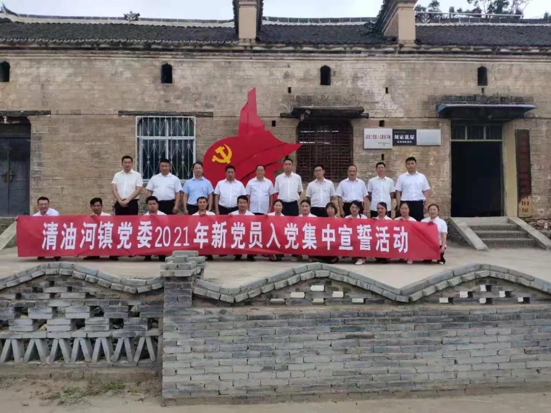 7月1日上午,清油河鎮黨委組織11名新黨員到團坪村劉家花屋紅色教育基地開展入黨宣誓活動,鎮黨委委員、各村(社區)黨支部書記和新黨員參加活動。