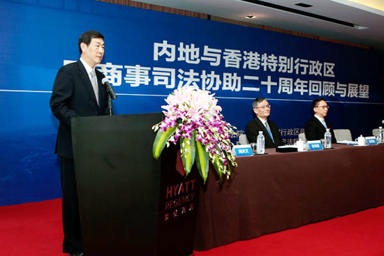 2017年4月23日,最高人民法院與香港特別行政區(qū)政府律政司聯(lián)合主辦的“內(nèi)地與香港特別行政區(qū)民商事司法協(xié)助二十周年回顧與展望”專(zhuān)題研討會(huì)在陜西西安召開(kāi)。最高人民法院常務(wù)副院長(zhǎng)沈德詠,陜西省委常委、政法委書(shū)記祝列克,香港特區(qū)政府律政司司長(zhǎng)袁國(guó)強(qiáng),香港特區(qū)高等法院首席法官?gòu)埮e能等出席會(huì)議并致辭。貿(mào)仲委副主任兼秘書(shū)長(zhǎng)王承杰應(yīng)最高人民法院邀請(qǐng),參加了此次專(zhuān)題研討會(huì),并就兩地仲裁司法協(xié)助發(fā)表了主題演講。
